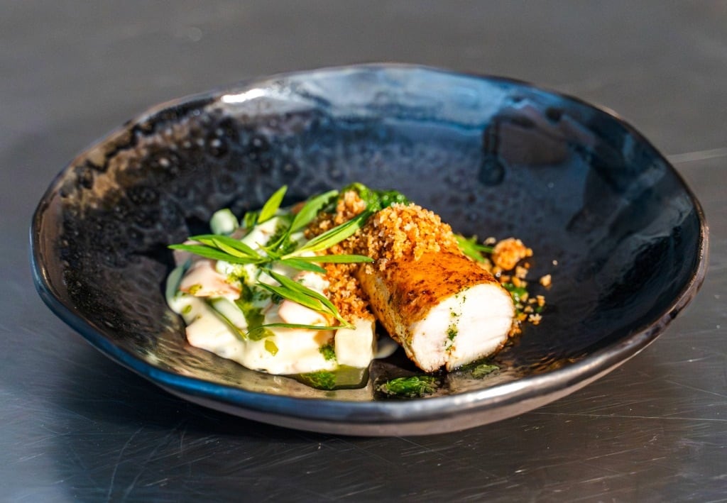 Kylling og sæsonens grøntsager i cremet velouté